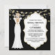 Beautiful faux dangling string lights appear to glisten and shine against a black background on which a blonde caucasian woman wearing a white wedding dress that has a large faux diamond at the centre of her back appears. Next to her is a scallop shaped frame edged with gold that has templates for your personalised wording.The overall feel is elegant and chic. This is ideal for summer; spring; winter and fall bridal shower or special anniversary celebration events. Feel free to delete or move the templates around and to change the size and style of the fonts if preferred.