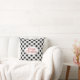 A black and white plaid pattern decorates this pillow, with the words merry Christmas. A fun throw pillow for your Christmas holiday decor. Designed for you by Blackberry Boulevard.