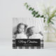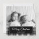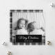 Christmas holiday photo greeting card with custom text, "Merry Christmas" and black and white buffalo plaid chequered design. Contact us for help with customisation or to request matching products.