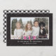Black White Buffalo Plaid Snow Pink Believe Photo Holiday Card