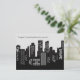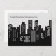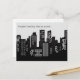 Our company has moved to a new location. Modern, custom city skyline at night drawing in black and white on customized moving announcement postcards for your business. Chic corporate relocation postcard for professional marketing to clients and customers. .