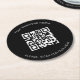 A stylish, classic black background. Personalise and add your business name, your own qr code and a text. White text.