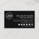 This loyalty card features a sleek, minimalist black front with white sans serif fonts for a clean and modern look. A spot for your logo is placed at the top left, with your business contact information clearly displayed for easy access. In the bottom right corner, there’s space for punch dots to track client visits or purchases—perfect for encouraging customer loyalty.