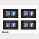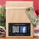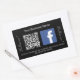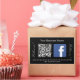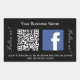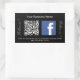 A stylish, classic black background. Personalise and add your business name, your own qr code to your Facebook account and a text. White text. With the text x2: Follow us!