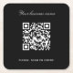 A stylish, classic black background. Personalise and add your business name, your own qr code and a text. white text. The name is written with en elegant hand lettered style script.