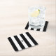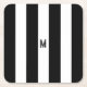Black & White Cabana Stripe Minimal Monogram Square Paper Coaster