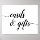 Simple and elegant sign directs guests to your card or gift table. Features "cards & gifts" in crisp black calligraphy script lettering.