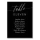 Elegant table cards in black and white with a delicate calligraphy script. Add the names of your wedding guests!