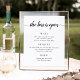 Invite guests to grab a favourite libation from the bar with our charming wedding bar menu sign. 11x14 poster features the headline "the bar is open" in crisp black calligraphy script and block lettering. Personalise with your wine, beer and spirits selections beneath.