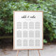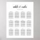 Wedding guest seating chart features your names in chic black calligraphy script lettering, with your wedding date and guest table assignments beneath.