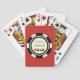 Have fun shuffling and dealing these custom black and white casino poker chip playing cards. With it's traditional casino chip on a red background it's sure to be a unique gift!