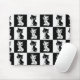 Black White Cat Monogram Block Print Mouse Pad
