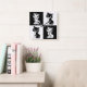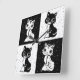 Black White Cat Monogram Block Print Square Wall Clock