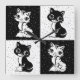 Black and White Chequered Monogram illustration Kitty Cat Block Print Pattern Design