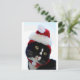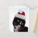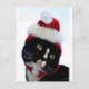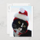 Black & White Cat Santa Hat looking left no frame Holiday Postcard
