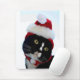 Black & White Cat Santa Hat looking left no frame Mouse Pad