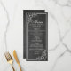 Modern Wedding Menu Rack Cards Templates - Elegant Script and White Floral Frame on Grunge Black Chalkboard Background.