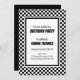 Black White Check Pattern Racing Theme Birthday Invitation