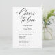 This timeless black and white wedding invitation features the phrase “Cheers to Love” in elegant script, paired with refined serif typography for your event details. The clean layout and monochrome palette create a modern yet romantic aesthetic that works beautifully for minimalist weddings, city celebrations, or formal receptions. A perfect choice for couples who love simplicity with style.