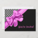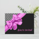 Black & White Chequerboard Pink Bow Invitation