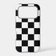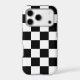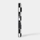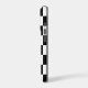 Shock absorbing iPhone case features a sleek black and white chequered pattern made of rows of alternating white and black squares.
