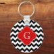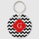 Black White Chevron Red Quatrefoil Monogram Key Ring