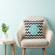 Black White Chevron Zig-Zag Turquoise Monogram Cushion