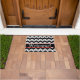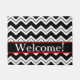 Make a fashion statement at your door when welcoming people to your home with this door mat with a sophisticated black and white chevron zigzag design and the word "Welcome". The word can be changed by customising to your own greeting or name. Great for the door to your office as well. The Chevron ziz zag graphic design is one of the hottest art and design trends, and is extremely popular from fashion to home decor. This sophisticated black and white chevron rug has a black strip with red edges for the word Welcome or your own word. Easy to customise!