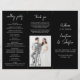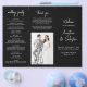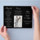 This black and white chic script trifold wedding program flyer is a stylish and functional way to guide your guests through your ceremony. Featuring elegant handwritten-style calligraphy and a clean, contemporary trifold layout, this program provides ample space to include your order of events, wedding party, readings, and personal notes. The classic black and white colour palette adds timeless charm, making it ideal for formal, minimalist, or romantic weddings. A sophisticated keepsake that beautifully complements your wedding suite.