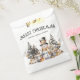 Add a festive touch to your holiday celebration with this charming Christmas treat bag featuring a delightful watercolor snowman design. The snowman, dressed in a classic black top hat and gold scarf, stands among festive trees, golden accents, and wrapped presents along the bottom—bringing a whimsical and cosy winter vibe to your party favours.