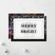 TeeLofts' black and white Christmas card design features Merry & Bright bold modern typography overlaid on a light grey ampersand as the primary design elements. The outer border is holiday greenery line art in black and white. It's easy to add your family names on the front and photo to the dated reverse side. #Christmas #Holidays #ChristmasCards
