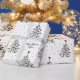 This Christmas wrapping paper features a black pine tree and black snow pattern with custom text on a white background. For more advanced customisation of this design, please click the "customise further" link.