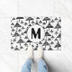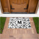 Black White Christmas Tree Pattern Monogram Doormat. Modern holiday design with a modern and abstract Christmas tree pattern in black and white colours. Add your monogram. Great Christmas gift idea for your friends and family and perfect Christmas holiday decor for your home.