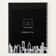 A black background, with a modern, abstract white city skyline as decor. Personlize and add your business logo, name and contact information.