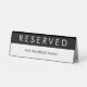 Black and white, colour block wedding reserved table tent sign with san serif font. Personalise it as needed.