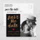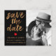 Elegant unique wedding save the date photo postcard. Design features of black and white photo, ''save the date'' in trendy handwritten script in gold cooper faux foil texture and red hearts. Add your details to the back.