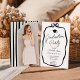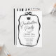 A modern black and white graduation layout with a soft hand drawn coquette-inspired ribbon frame and elegant script typography. The front features a refined invitation design with a bow detail, while the reverse side highlights a full photo framed by bold vertical stripes for a stylish, fashion-forward look.