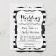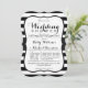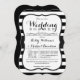 Elegant, formal black and white stripes, striped pattern couples wedding shower invitation with black fonts and white hearts on back. Perfect year round classy invite for spring, summer, fall, or winter engagement, couples wedding showers. Bracket shape invite for stylish vintage look.