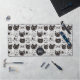 This fun desk mat has a pattern of funny cartoon cat faces in black and white. A circle banner with your monogram in white is at the bottom centre. Sure to bring a smile! *Thanks to Soul Cliparts World for the cat face images in this design.