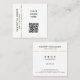 Black text, white background, custom logo, a QR Code, gold stripe accent, modern minimalistic business card design.