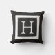 Customizeable modern and trendy black and white monogram throw pillows or cushions. Personalise your gift by adding your own initial. Choose your own font and colours to make it your own. This classic contemporary chic design will enhance any home decor, living room, sofa, lounge, bedroom, office, beach house, boat or university or college dorm room, nursery, teenagers, girls, boys, baby or kids rooms. Great for teenagers, college or university, boys or girls.