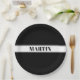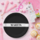 Black & White Custom Name Stripe Paper Plate