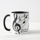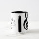 Add a custom message and a name to this modern, stylish black and white mug with musical notes to create a great gift for a musical instrument or singing teacher or student.