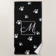 Black & White Cute Dog Paw Print Pattern Monogram Beach Towel