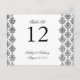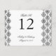 Use the personalise option to change the table number on these elegant black and white damask arabesque table cards. Please NOTE: You MUST change the table number on each card and add one of each number to your cart. If you want to do more extensive changes including changing the font, font colour, or font size use the customise option.