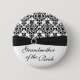 This black and white damask with faux ribbon and jewels Grandmother of the Bride button matches the wedding invitation show below. The text is customisable and so is the shape and size of the button. If you need anything changed, please email niteowlstudio@gmail.com.