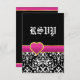 Black white damask hot pink heart wedding RSVP