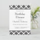 Black & White Damask Pattern Birthday Dinner Party Invitation