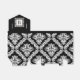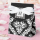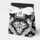 Black, white damask pattern monogram wedding favour box