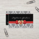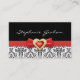Black white damask pattern with red bow and jewel business card template that features a black and white damask pattern and a red ribbon across it with a bow and a heart shaped jewel also in red with gold outline and strass which adds a little bling. Note the bow and the heart diamond jewellery is a "printed on" illustration and not a real crystal, so are the strass. An elegant and stylish feminine business card design. Trendy, fashionable and modern perfect for professional or personal use.